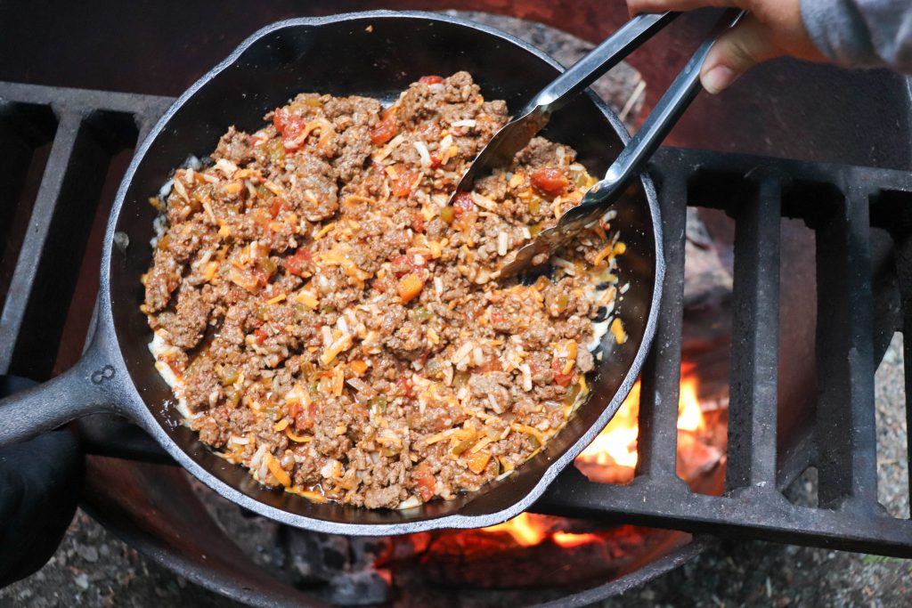 - Ground beef, prepared – Hearty, protein-packed, and pre-cooked at home to make camp cooking simple.