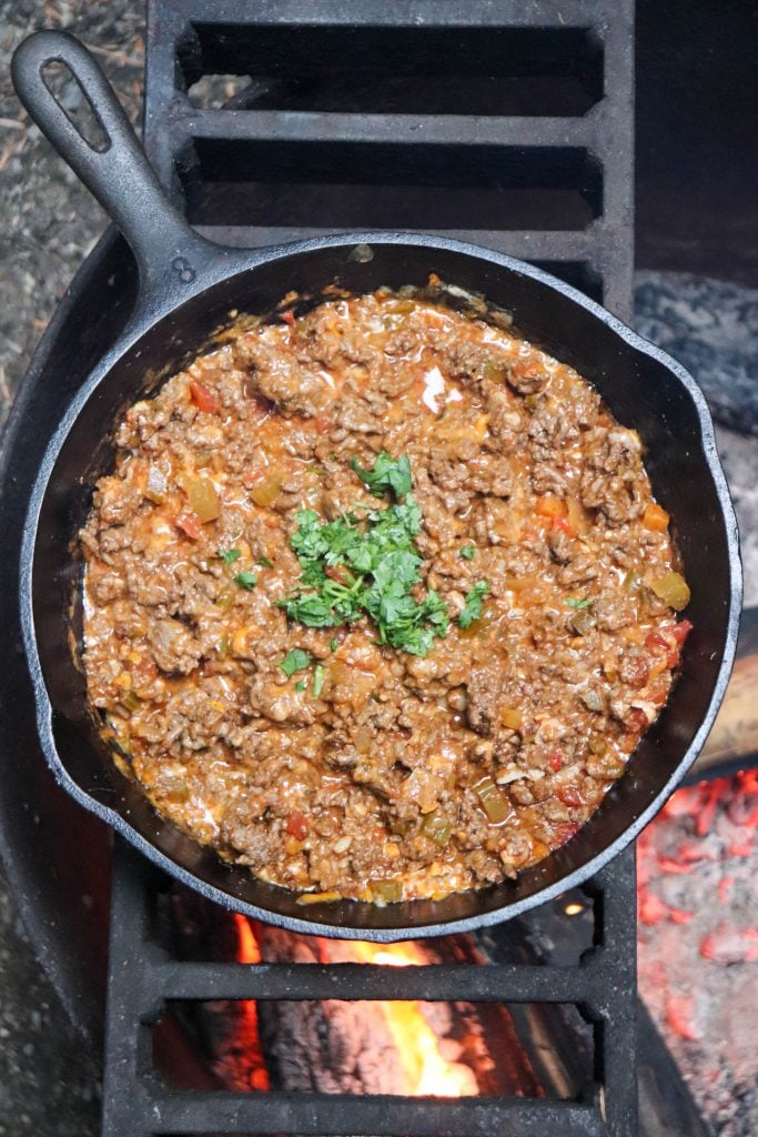 This skillet taco recipe is absolutely delicious and super easy to make! We love creating one pot-style meals while camping because it makes cooking and clean up easy.